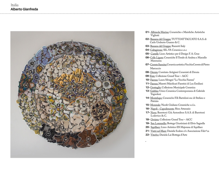 L’opera è l’esito di una raccolta di manufatti ceramici, provenienti da 21 città di antica tradizione ceramica facenti parte dell'AiCC, i quali sono stati poi rotti in frammenti, attraverso un processo mirato e ragionato, e successivamente riassemblati al fine di comporre il grande pannello ITALIA.