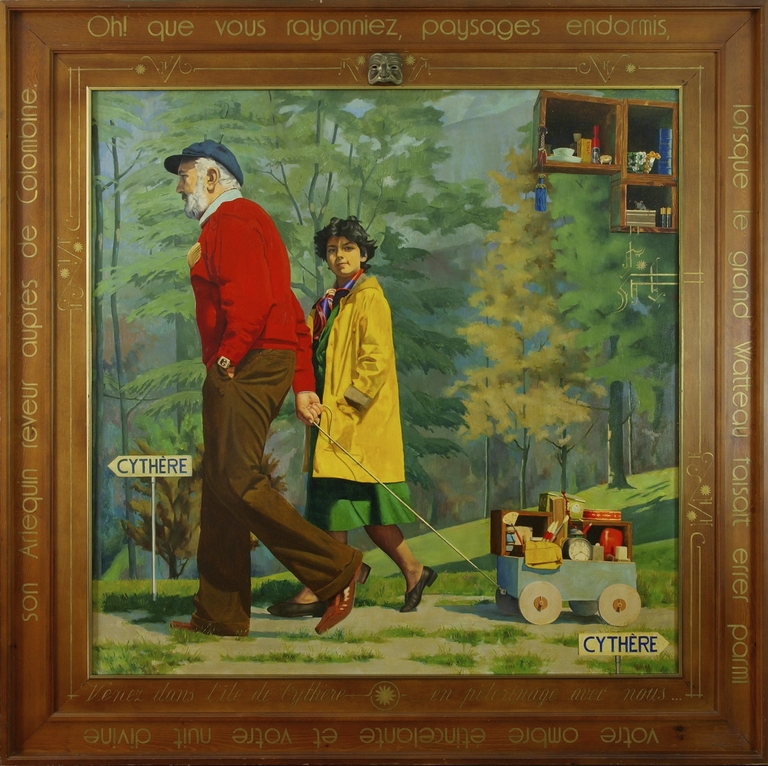 Autoritratto dell'artista in cammino in compagnia di una ragazza.