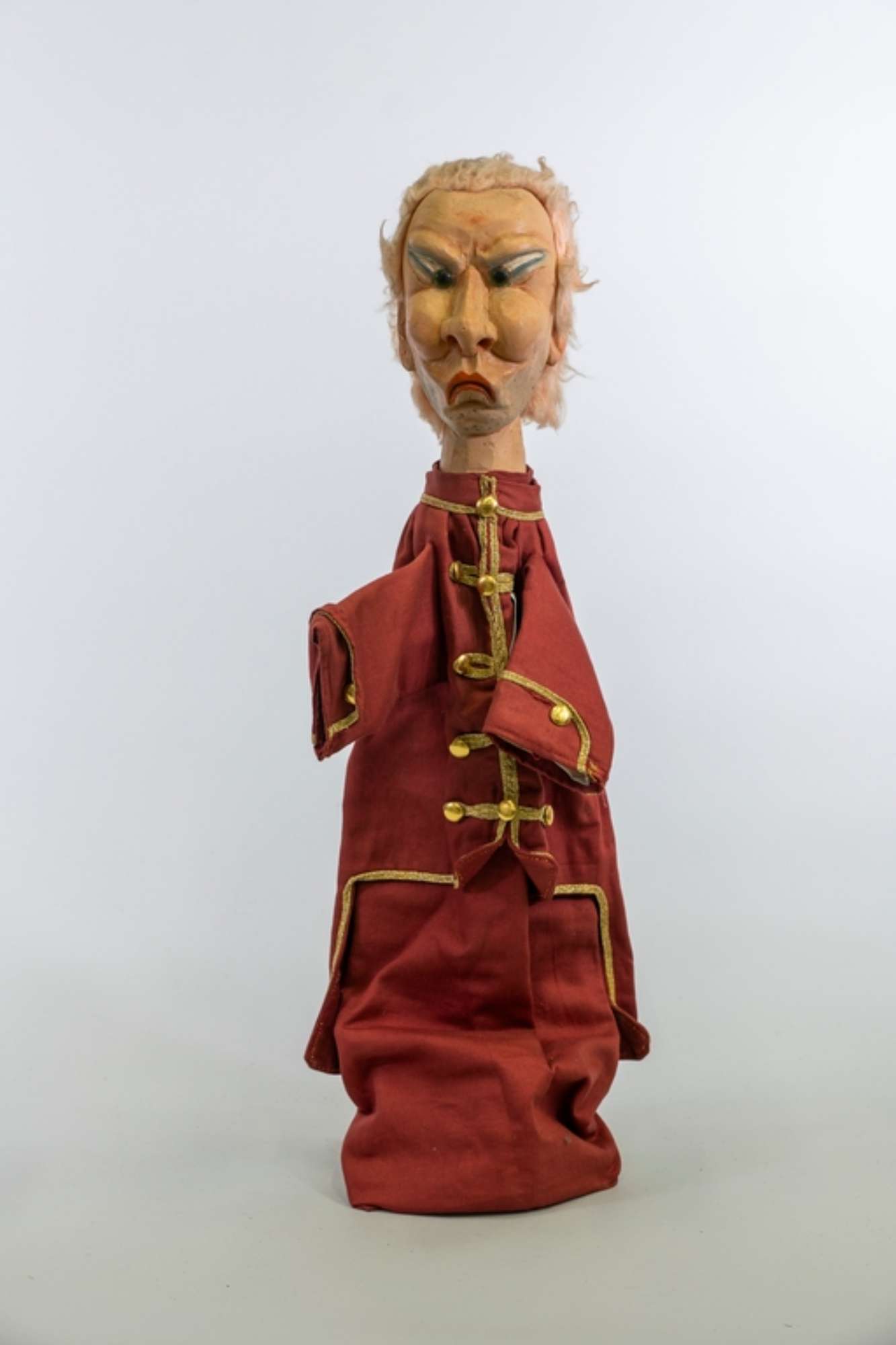 Il burattino apparteneva alla raccolta di Cesare Maletti ed è pervenuto al Museo Civico di Modena nel 2018. Esponente di una storica dinastia di burattinai modenesi, Cesare Maletti (Modena 1929-1992) iniziò verosimilmente negli anni Cinquanta a raccogliere quanto connesso col teatro delle figure animate, indipendentemente dalle scuole e dalla provenienza: burattini, marionette, pupi, scenografie, oggetti di scena, testi e documenti, compresi tra il Settecento e il Novecento. Rapporti professionali e di amicizia, da cui derivano scambi e acquisti di materiali, legavano Cesare Maletti a famiglie di burattinai e di marionettisti, tra cui Ferrari, Sarzi, Zaffardi, Colla e Vignoli, o eredi di questi come Mario Tirelli, figlio del caricaturista Umberto Tirelli, autore all'inzio degli anni Venti del Teatro Nazionale delle Teste di Legno. Raggruppata sotto il nome di "Teatro delle Maschere", la raccolta fu allestita presso il suo museo-laboratorio in Via Livizzani 38 a Modena (cfr. “I burattini dei Maletti”, Modena 1983 [1984]), condotto assieme al figlio Mario (Modena 1947-2019), con cui nel 1970 fondò una compagnia che ottenne successi nazionali, in particolare con lo spettacolo "Fantasia per un burattino". Di Cesare si ricordano la versatilità con cui dava i movimenti e le voci ai vari personaggi, anche femminili, i rintocchi di campanella con cui apriva le rappresentazioni, e la loro chiusura con un'allegra filastrocca dialettale tramandata in famiglia. Creatore egli stesso dei suoi burattini assieme al figlio e alla moglie Liliana Bestagno a cui spetta la realizzazione dei costumi, Cesare Maletti collaborava anche con istituzioni pubbliche, dando vita ad un'intensa attività espositiva e didattica rivolta alle scuole.