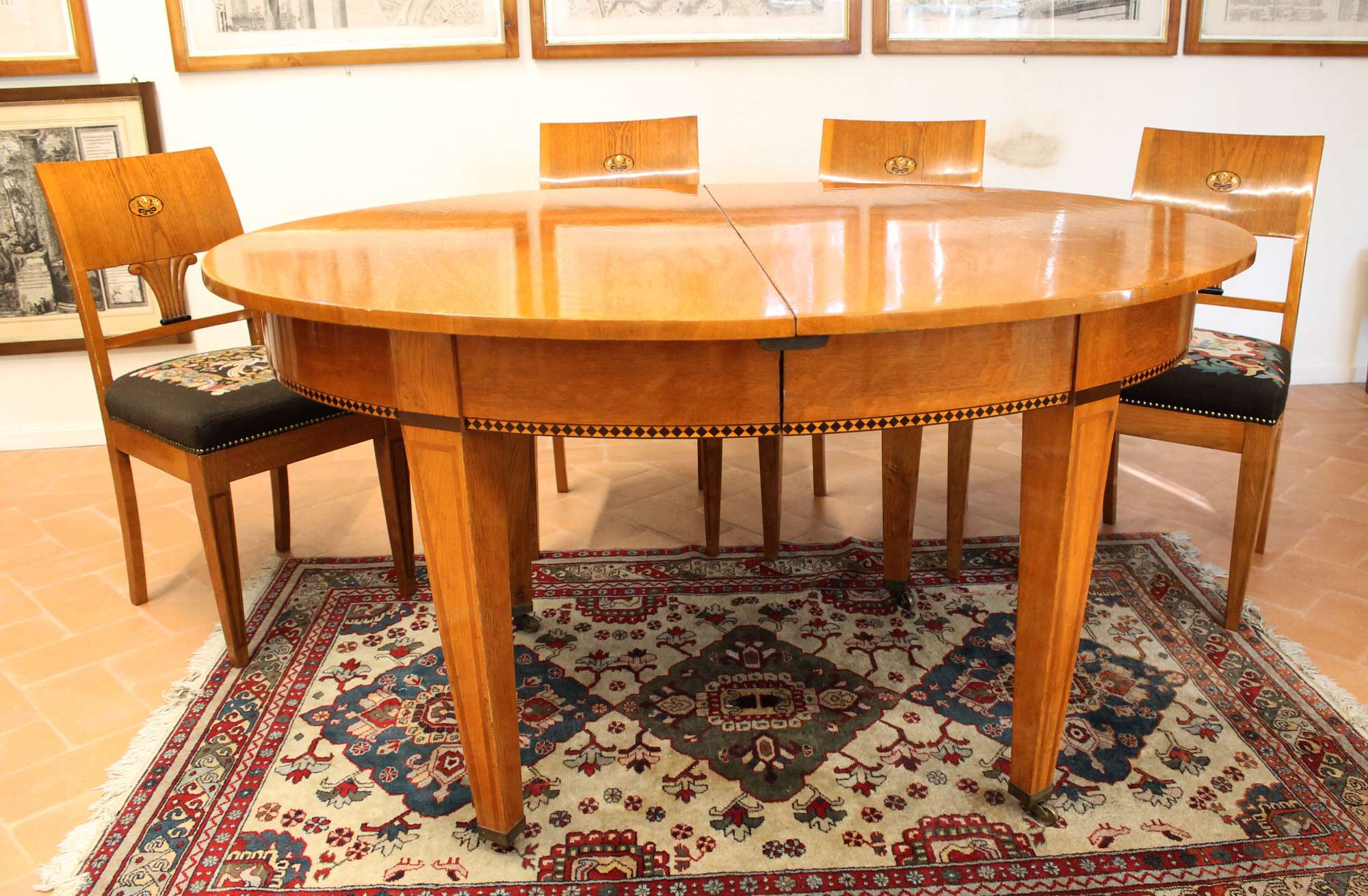 Tavolo rotondo allungabile, con ruote in ottone