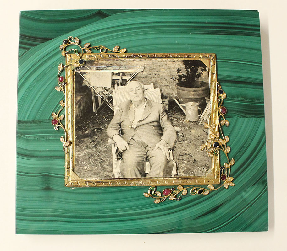 La cornice conserva una fotografia che ritrae Bassani mentre riposa a Umbertide, sulla terrazza della casa dell'amico Richard Piccolo, nell'autunno del 1998.
