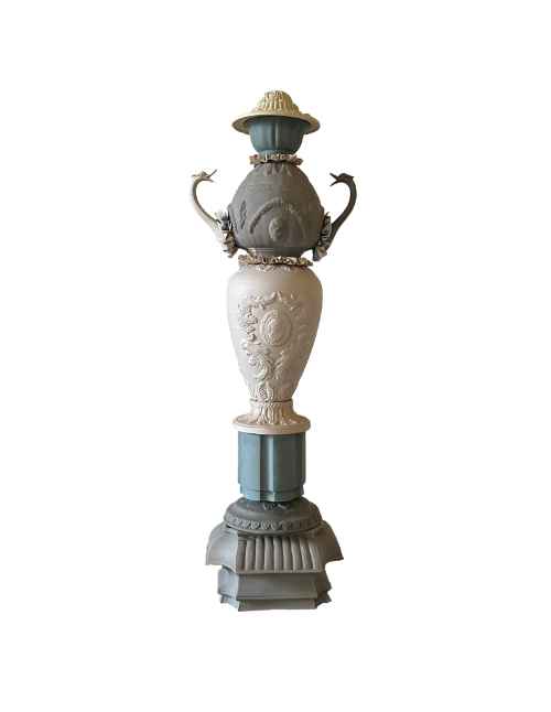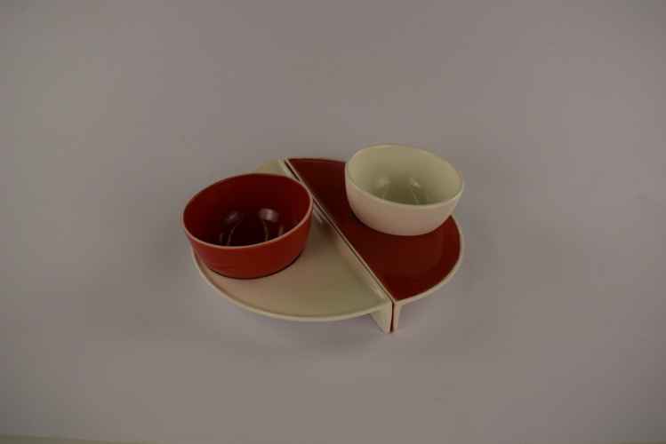 Riflesso è un progetto per un supporto da tavolo a forma di ogiva sezionata sul cui piano inclinato applicare uno specchio e, sulla parte superiore in corrispondenza di un foro presente sul pezzo ceramico, ospitare un vaso monofiore in materiale plastico.