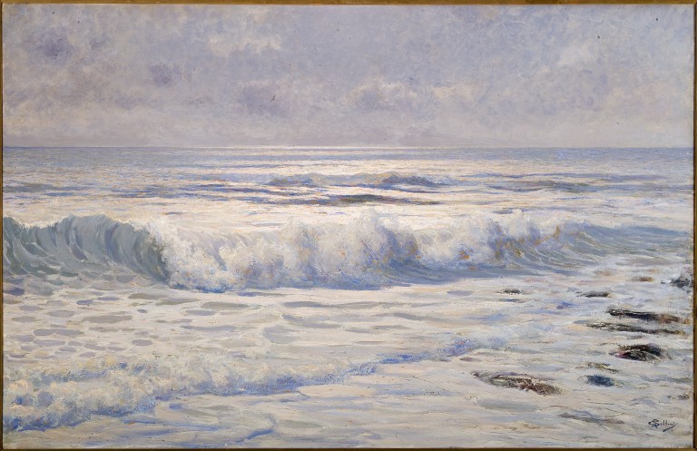 Mareggiata resa con una pennellata corposa, attenta alla luce.