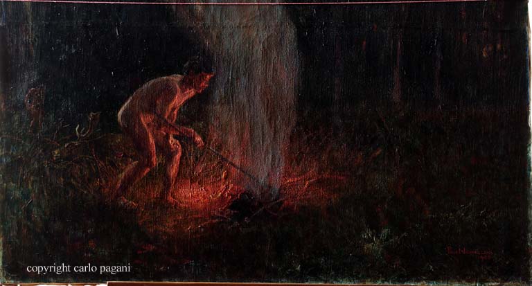 Fu acquistato a Torino, presso l'avv. Giuseppe Aimery, l'1-2-1914 per L. 350 (si vedano lettere di Aimery dell'1-11-1913; 9, 22, 23-1; 1-2; 28-7; 21-10-1914 e ricevuta dell'1-2-1914; nella ricevuta il dipinto risulta pagato 1.000 lire insieme a un quadro di Pasini [n. 43], ma da altra lettera dell'Aimery risulta come era stata ripartita la somma. Si veda anche lettera di Nomellini del 6-1-1925). Era stato esposto alla «Prima Quadriennale di Torino» organizzata dalla Società Promotrice delle Belle Arti nel 1902. Acquistato dalla Società Promotrice, fu sorteggiato fra i soci. Chi lo vinse lo vendette poi a Giuseppe Aimery.
