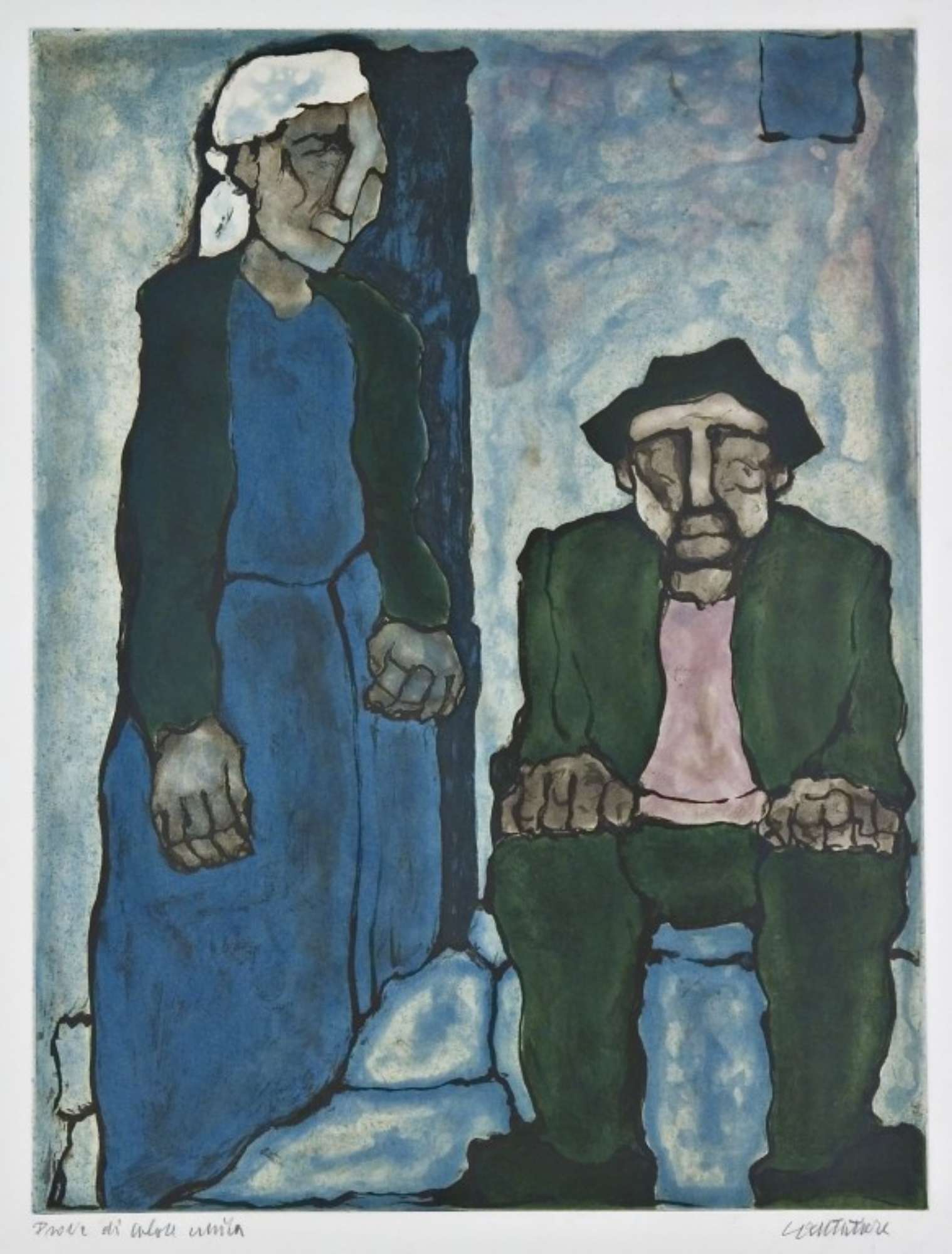 La litografia riproduce il dipinto "Gente del sud", esposto in occasione della personale dedicata dal Comune all'artista pugliese per la XXIX Fiera di Argenta, nel 1986. Le litografie sono state donate alle raccolte comunali da Cantatore in seguito a questo evento.