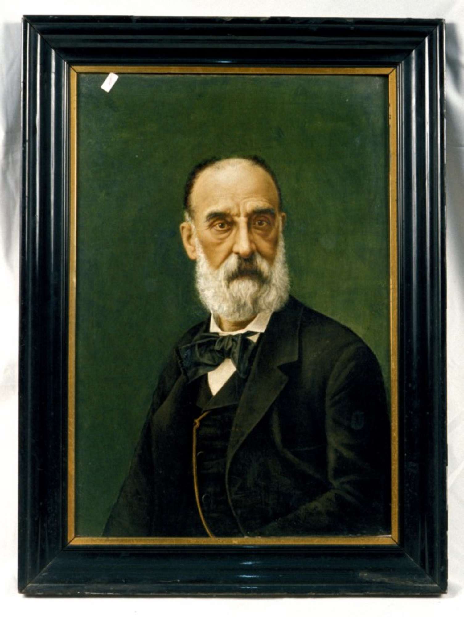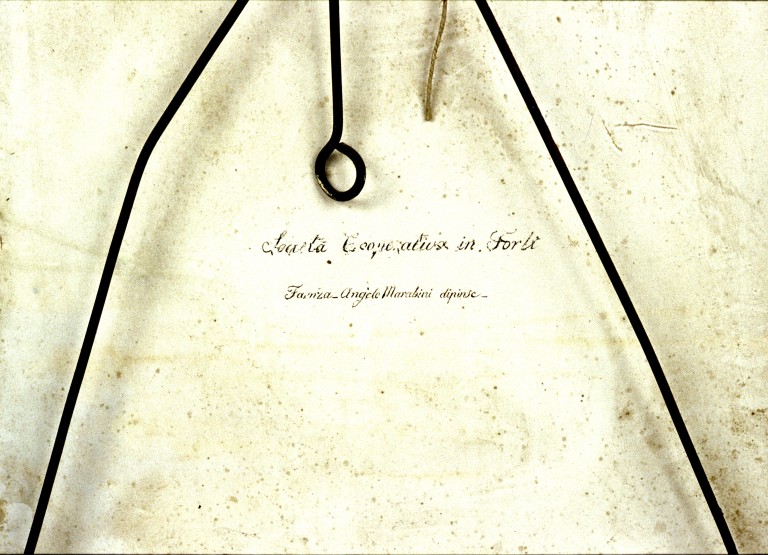 Il faentino Angelo Marabini (1819-1892) venne avviato allo studio dell'incisione dal padre, direttore di una tipografia, presso cui lo impiegò ostacolando la sua passione per la pittura. Tornata a rifiorire a Faenza la pittura su maiolica per opera di Achille Farini, Angelo si diede con passione a quel genere di arte e la sua abilità fu a tal punto riconosciuta da essere chiamato nel 1879 alla direzione della pittura artistica nella fabbrica Ginori di porcellane e maioliche, a Doccia presso Sesto Fiorentino. Ritornò dopo tre anni a Faenza dove proseguì fino alla morte la sua attività artistica. Questa lastra maiolicata, commissionatagli dalla Società Cooperativa in Forlì, ritrae Aurelio Saffi (1819-1890), uomo del risorgimento italiano, triumviro della Repubblica Romana (1849).