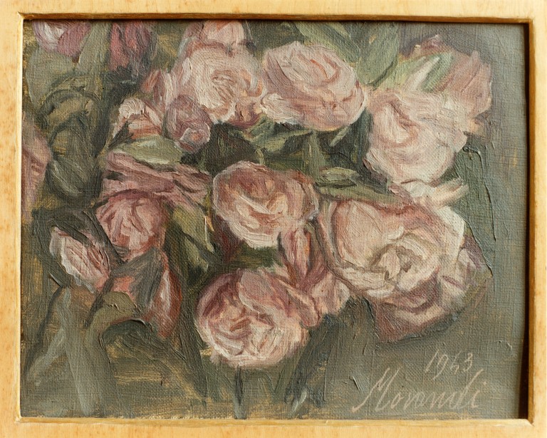 L'opera raffigura un mazzo di fiori rosa, resi con pennellate pastose.