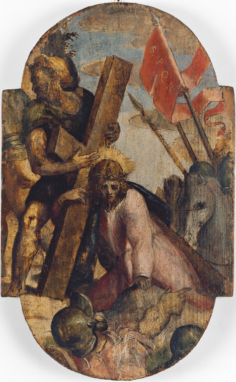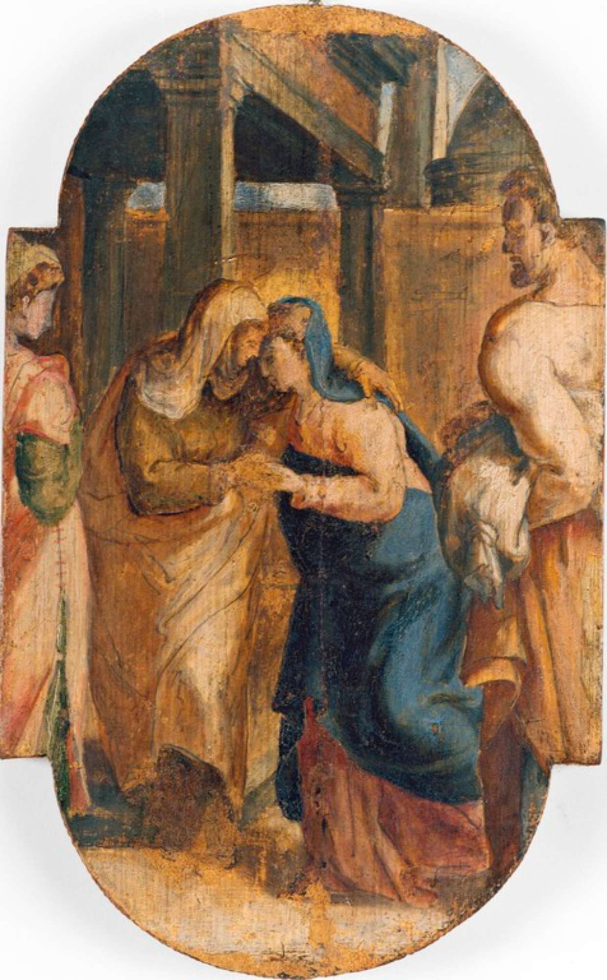 Piccola tavola ad olio raffigurante la Visitazione. Fa parte di un ciclo dei Misteri del Rosario ora smembrato.
