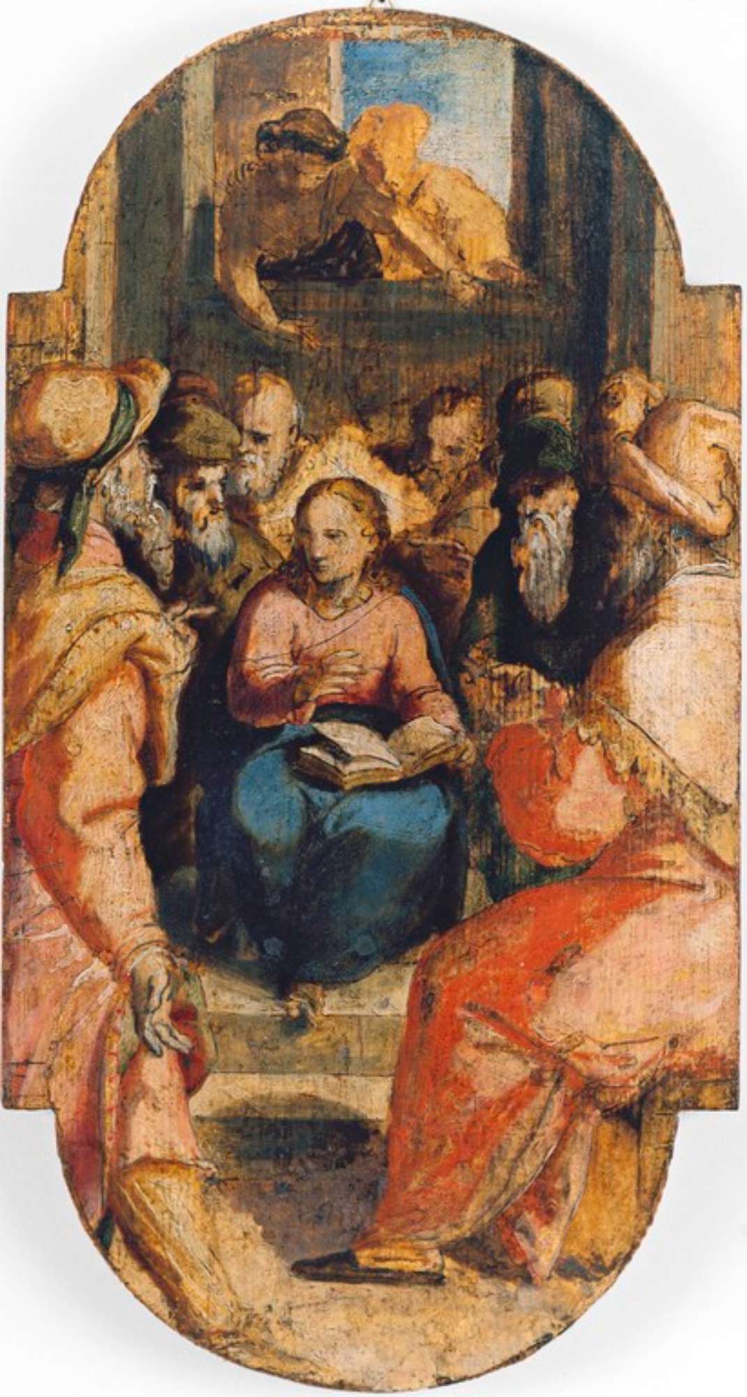 Piccola tavola ad olio raffigurante Gesù nel Tempio. Fa parte di un ciclo dei Misteri del Rosario ora smembrato.