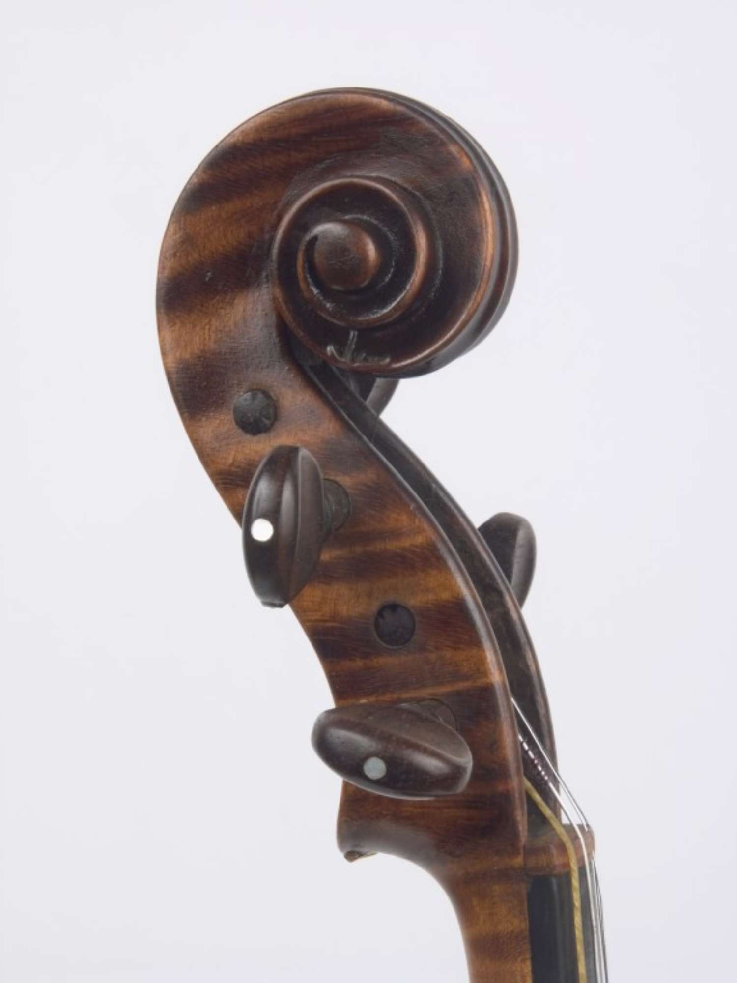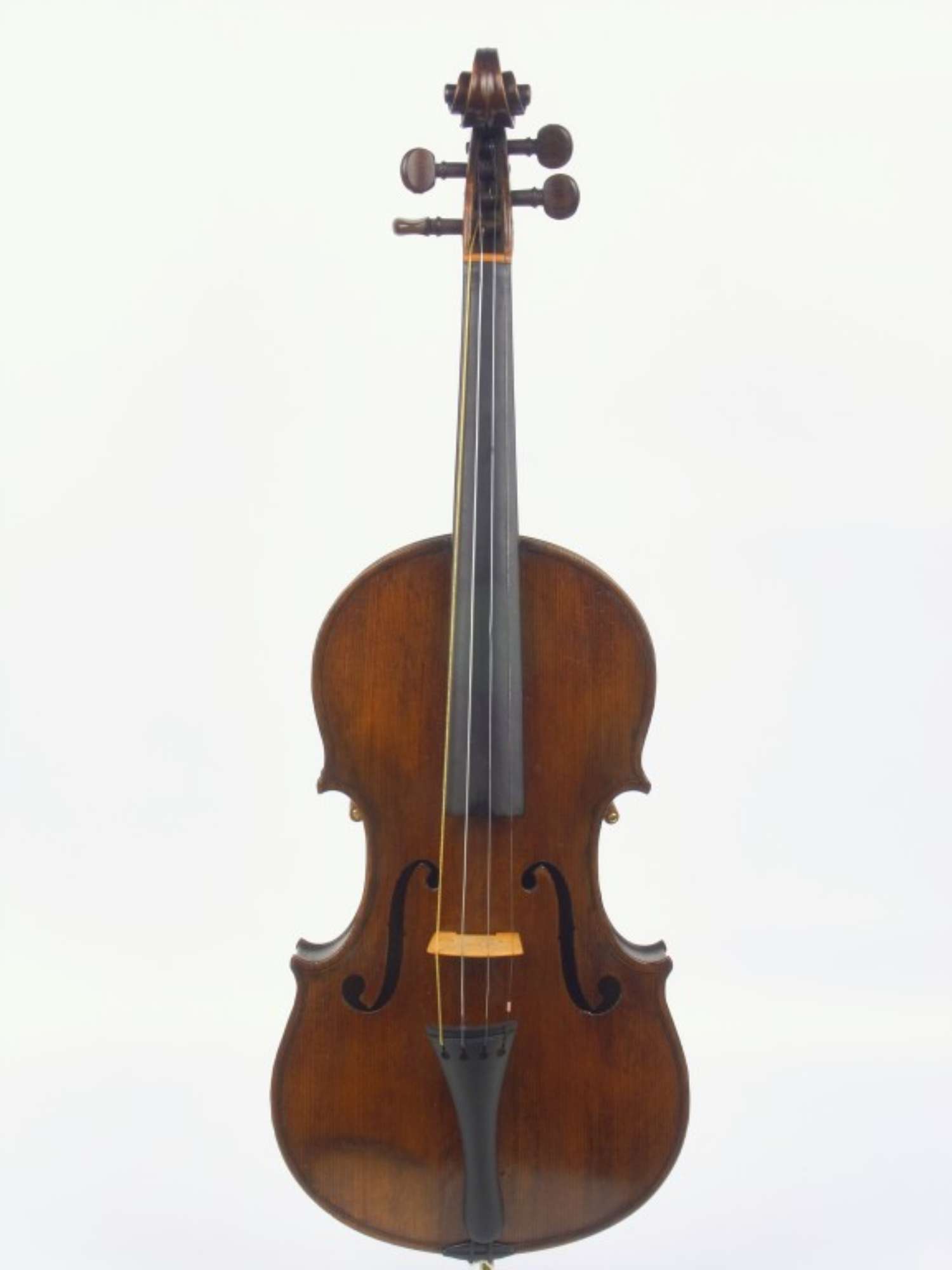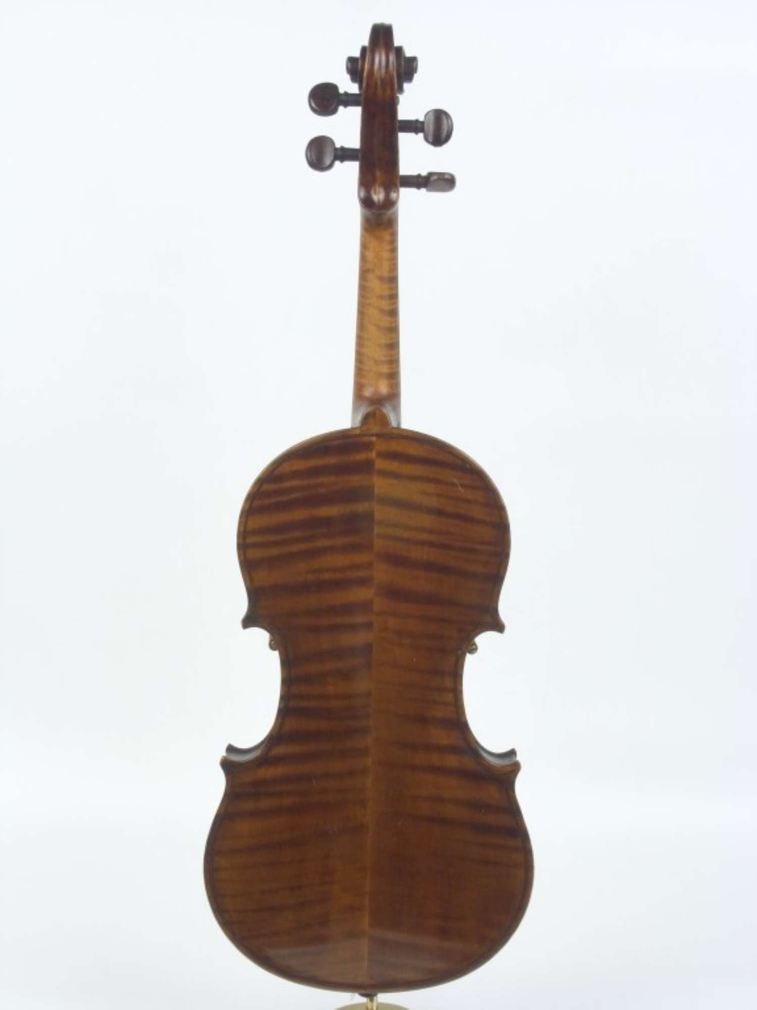 Il fondo è in due pezzi di acero con marezzatura larga regolare abbastanza marcata, discendente dalla giunta. Le fasce e la testa sono del medesimo legno. La tavola è in due pezzi di abete a venatura media e regolare. Gli anelli annuali sono abbastanza marcati. La sguscia del bordo e in particolare delle punte è poco pronunciata, la sguscia delle palette delle ff è assente. Le ff sono molto larghe ed aperte, annerite lungo il bordo interno. Il filetto, largo in media 1,9 mm ha il bianco in acero. Il manico è stato rimesso e una parte del filetto sostituito vicino alla nocetta, che è stata sostituita anch'essa. La chiocciola è molto scavata con bordi arrotondati, così come le guance della cassetta dei piroli. I tasselli interni e le controfasce sono in abete. La tastiera è di ebano, alleggerita inferiormente e parzialmente scollata. Il capotasto è in legno chiaro. La cordiera, di ebano, è moderna. I piroli sono di palissandro. Il bottone della cordiera è di ebano e il rinforzo di ebano in fondo alla tavola è rifatto. La vernice è di colore bruno rossastro, successivamente spalmata di un olio non siccativo; Il fondo è in parte scollato.