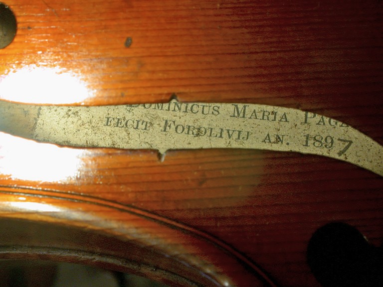 Questo strumento è citato nel manifesto della "Mostra di alcuni strumenti della collezione Paganini", pervenuta per lascito all'Ente Orfanotrofi di Forlì al numero 11. La provenienza è diretta per lascito di Alba Paganini.
