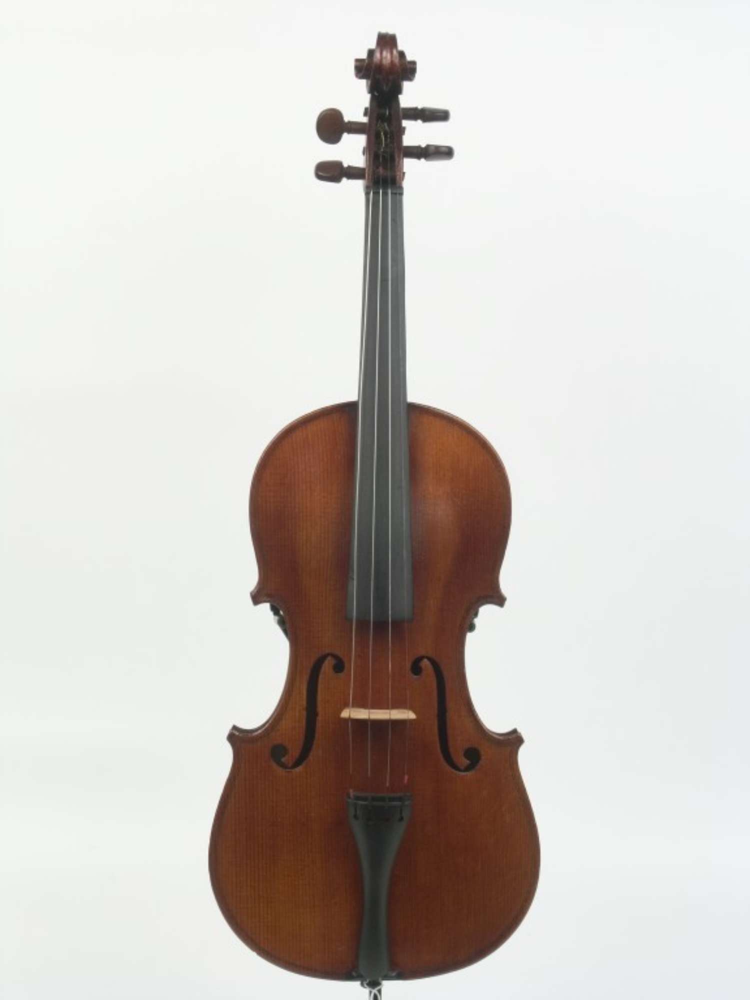 Il fondo è in due pezzi di acero senza marezzatura, la sguscia esterna è larga e poco pronunciata. Le fasce sono dello stesso legno del fondo. La tavola è in un pezzo unico di abete a venatura che si allarga dagli acuti ai gravi con anelli annuali marcati e alcune maschiature. La sguscia del bordo è simile a quella del fondo. La testa è in acero non marezzato, scolpita con mano incerta. Il pirolo inferiore è esageratamente spostato verso il capotasto. Il filetto è disegnato a graffietto. La tastiera è di ebano. La cordiera è pure di ebano. I piroli sono di ebano. Il bottone della cordiera è di ebano. La vernice è di colore arancio-rosso, sopra la vernice è spalmato uno strato di olio non siccativo.