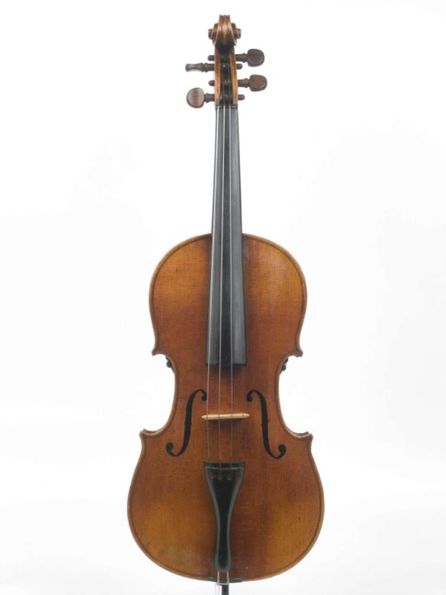 Il fondo è in due pezzi di acero con leggera marezzatura perpendicolare alla giunta, la sguscia esterna è larga e poco pronunciata. Le fasce sono dello stesso legno del fondo. La tavola è in due pezzi di abete a venatura media non perfettamente rettilinea verso la giunta centrale. Gli anelli annuali sono poco evidenti per la mordenzatura e il colore della vernice penetrata nel legno che ha determinato una inversione di intensità (negativo). La sguscia del bordo è simile a quella del fondo. La testa è in acero non marezzato, scolpita in modo non rifinito con una forma a goccia verso il basso. Il tallone della testa è stato limato, probabilmente perché la sagoma dava fastidio al musicista. Il filetto è in legno con il bianco molto stretto. La tastiera è di ebano. La cordiera è pure di ebano. I piroli sono di palissandro. Il bottone della cordiera è di ebano. La vernice è di colore arancio-rosso, ma lo strumento è stato interamente raschiato e la vecchia vernice asportata. Sopra la vernice è spalmato uno strato di olio non siccativo.
