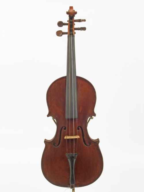Si tratta di un violino di produzione artigianale seriale, la forma della cassa è tipicamente tedesca. Il legname impiegato non è legname da liuteria, ma nella sua estrema semplicità di esecuzione si intravede la mano di un artigiano non digiuno di liuteria e di manualità. Questo violino fa parte di una serie di 5 strumenti donati da Alvaro Fiorentini in memoria del padre Francesco e da quest'ultimo usati per le lezioni agli allievi. Sulla nota nella vetrina manca l'anno della donazione.