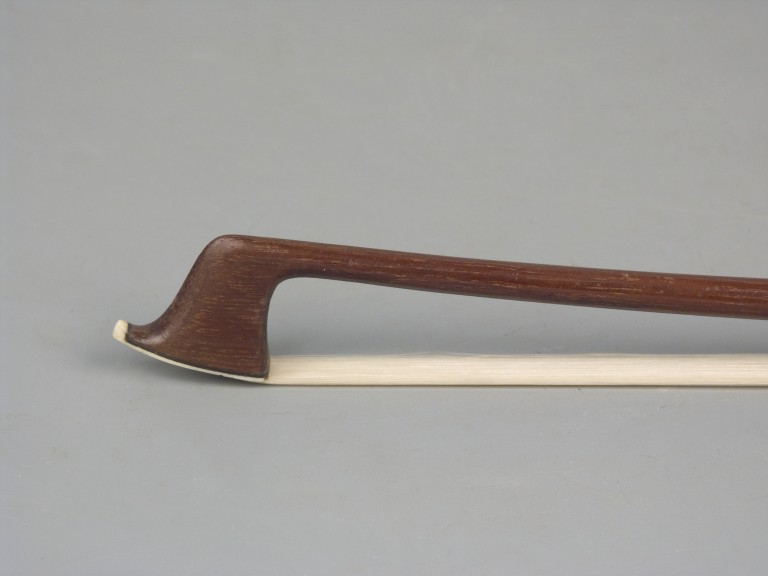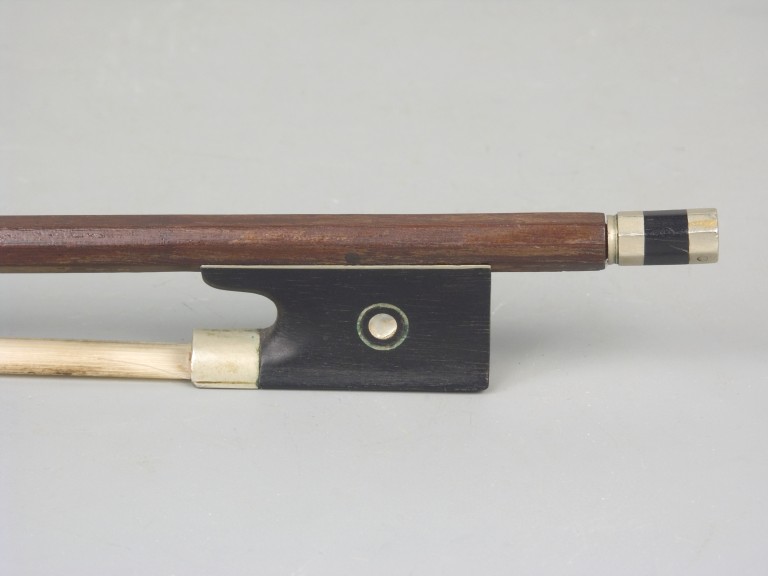 La bacchetta, a sezione tonda, attualmente è senza fasciatura, ma vi sono tracce della sua presenza in passato, è in legno di pernambuco. Il nasetto è in ebano con occhio cerchiato di madreperla. Il bottone, non originale, è in ebano e nickel con occhio di madreperla in testa. La testa ha la scarpetta in plastica.