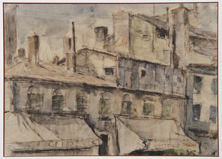 Caseggiati lionesi trattati a matita bruna ed acquerello.