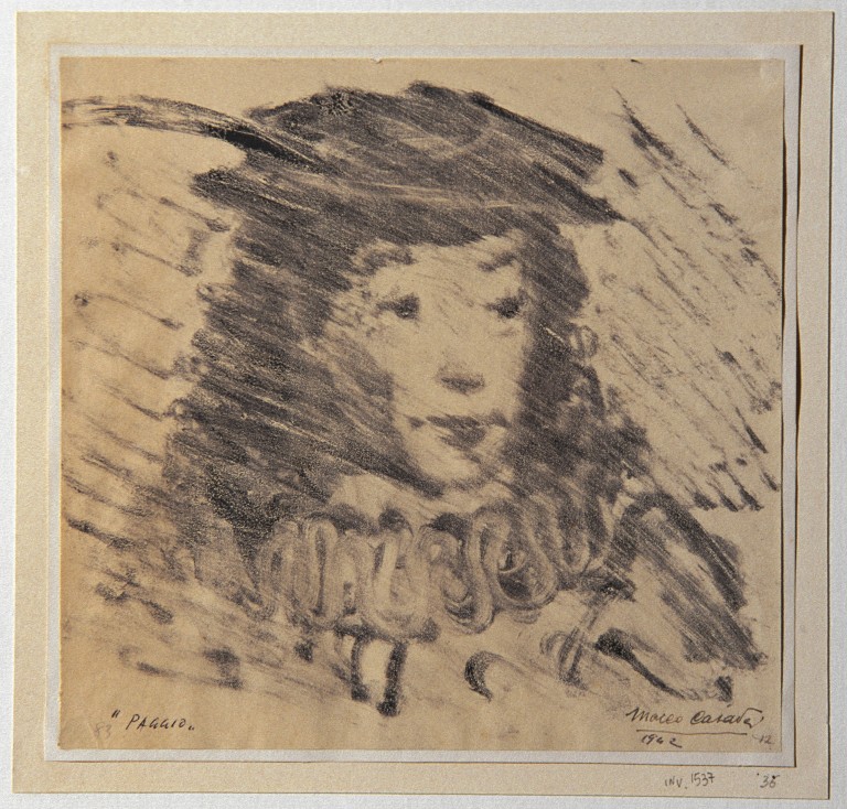 Monotipo raffigurante un giovane uomo dalla lunga capigliatura con gorgiera e cappello.
