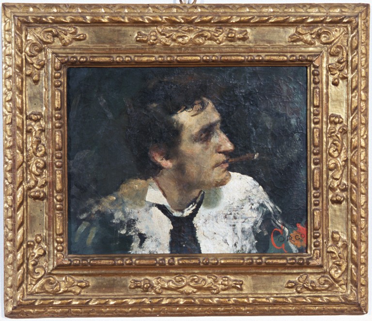 Il ritratto si deve a Vittorio Matteo Corcos, artista livornese incontrato da Gianfanti a Firenze, dove il pittore cesenate si era recato per conoscere Morelli e gli altri maestri che frequentavano il celebre Caffè Michelangelo, attivando importanti esperienze di scambio culturale con artisti di area toscana. Tra i due giovani pittori nacque presto un sodalizio artistico, tanto che nel 1880 Corcos seguì il Gianfanti a Napoli presso lo studio del Morelli diventando anch'egli allievo del maestro verista.