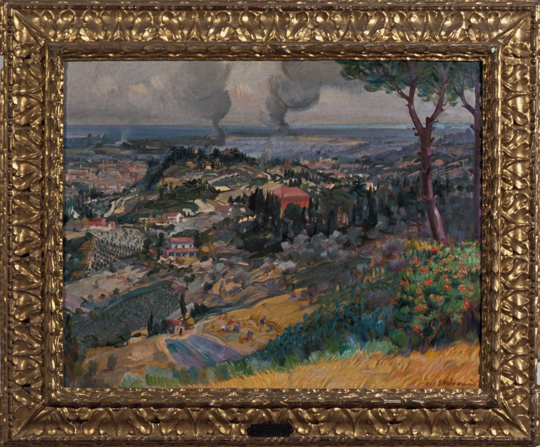 L'opera appartiene all'ultima fase della produzione del pittore che, nei primi anni di carriera, aveva partecipato da protagonista al futurismo storico italiano. Trasferitosi a Cesena negli anni Venti per insegnare, Malmerendi continua la sua attività artistica rappresentando, anche in linee originali e notevoli effetti cromatici, l'ambiente e il folklore romagnolo, passando quindi ad una pittura più comunicativa, semplice e discorsiva. Anche attraversando l'esperienza del Novecento, non abbandona mai il caratteristico largo impianto decorativo che adatta ad una produzione paesaggistica di tipo postimpressionista.