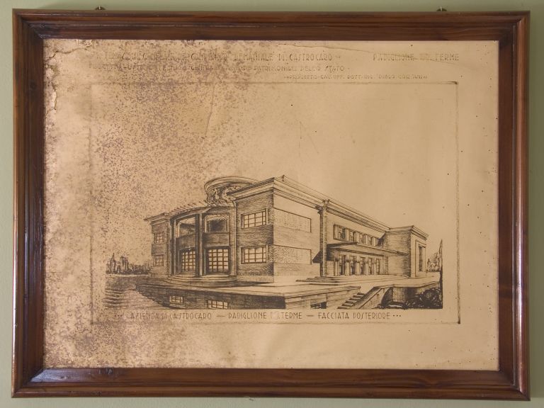 Si tratta della riproduzione del disegno originale realizzato per il Padiglione delle Terme.