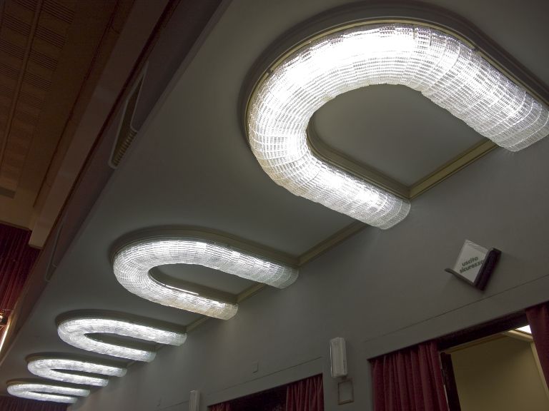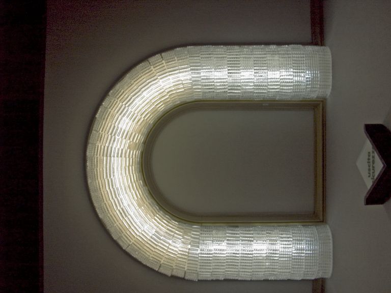 Plafoniera in vetro soffiato a forma di ferro di cavallo.