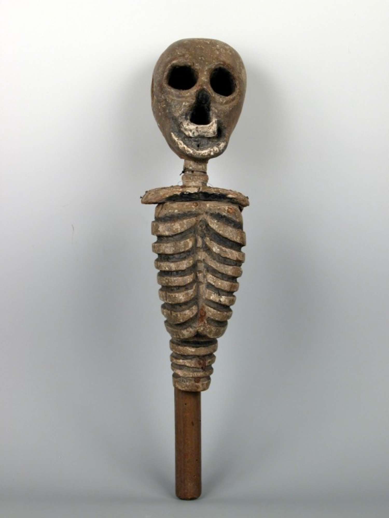 Il fantoccio in esame raffigura il torso e la testa di uno scheletro a cui mancano le braccia