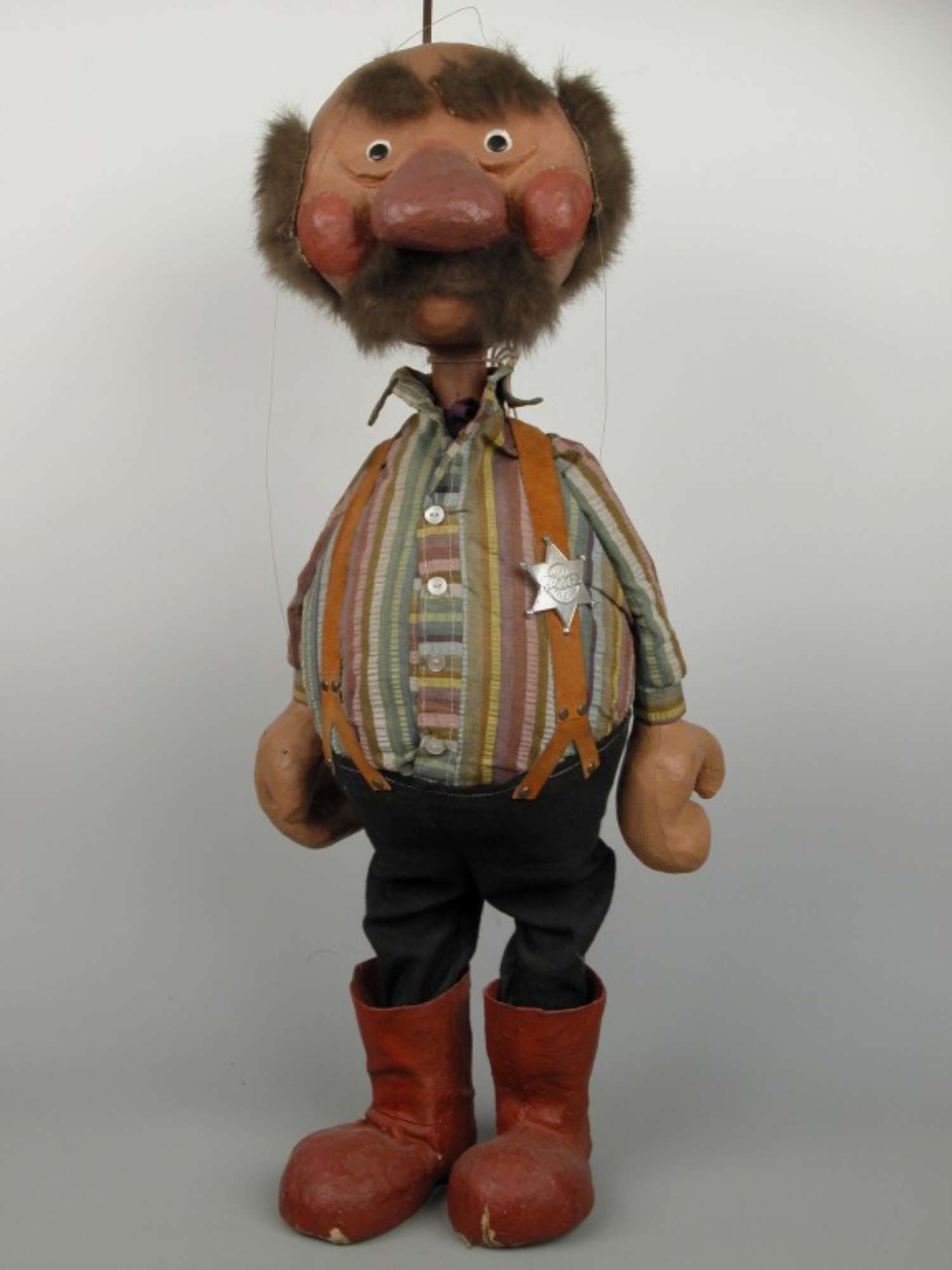 Il fantoccio in esame raffigura una figura maschile con folti baffi e folte ciglia, naso e gote rosse e panciuto. Indossa una camicia a righe e pantaloni neri tenuti da due bretelle in pelle; ai piedi calza un paio di stivaletti rossi. Sulla bretella di sinistra è appuntata la stella da sceriffo.