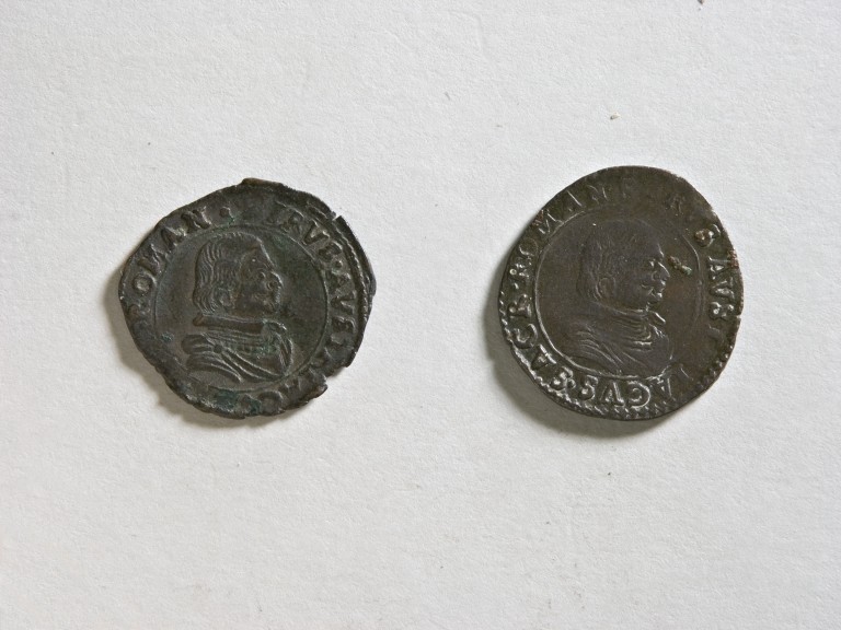 Si tratta di una contraffazione del "dreier" del Sacro Romano Impero, con ritratto e stemma. Il dreier è una moneta da tre denari o pfenning di origine germanica, della quale pare sia iniziata la coniazione nel 1482, e si sia diffusa rapidamente fra le città germaniche e svizzere. Alla fine del secolo XVI divenne un pezzo da un ventesimo di tallero, mantenendo la medesima denominazione.