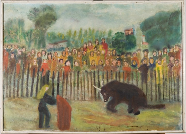 Dipinto di notevole semplificazione tecnica ed esecutiva, sia nel disegno che nella stesura del colore e nell'impianto prospettico e compositivo d'insieme. La raffigurazione della scena di genere – una corrida popolare – è resa con modi e segni quasi infantili.