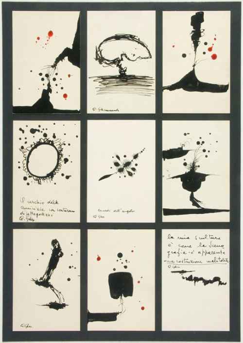 Incollato su cartoncino, insieme ad altri otto disegni.