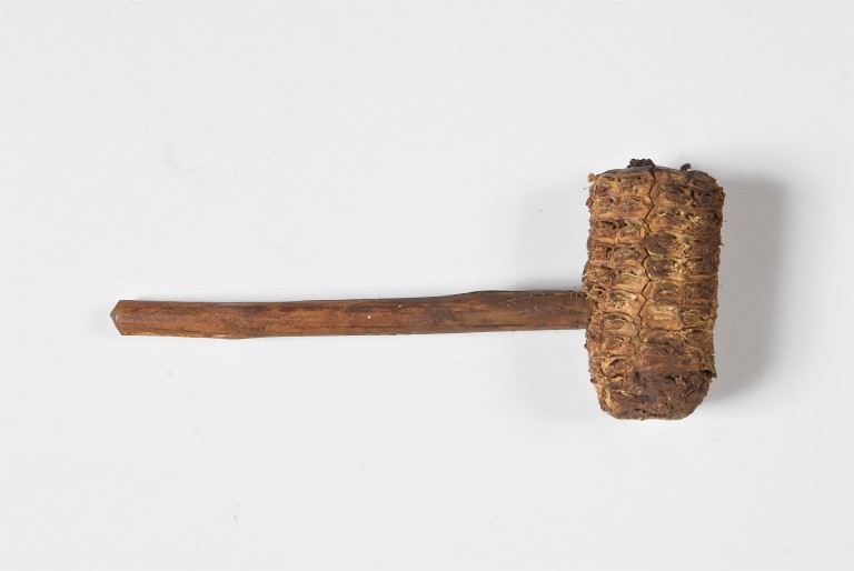 Pipa realizzata con un toraolo di granturco scavato e bacchetto di legno.