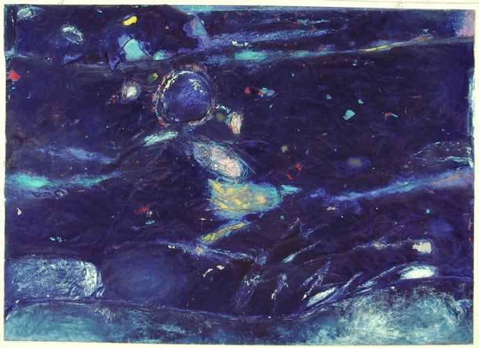 Opera contenuta insieme ad altre otto tavole in una cartella che mostra nel recto un timbro con nome dell'autore, titolo e datazione. Nel verso della cartella timbro dell'autore con indirizzo. Nella velina che protegge la tavola, timbro dell'autore con nome, titolo e data.