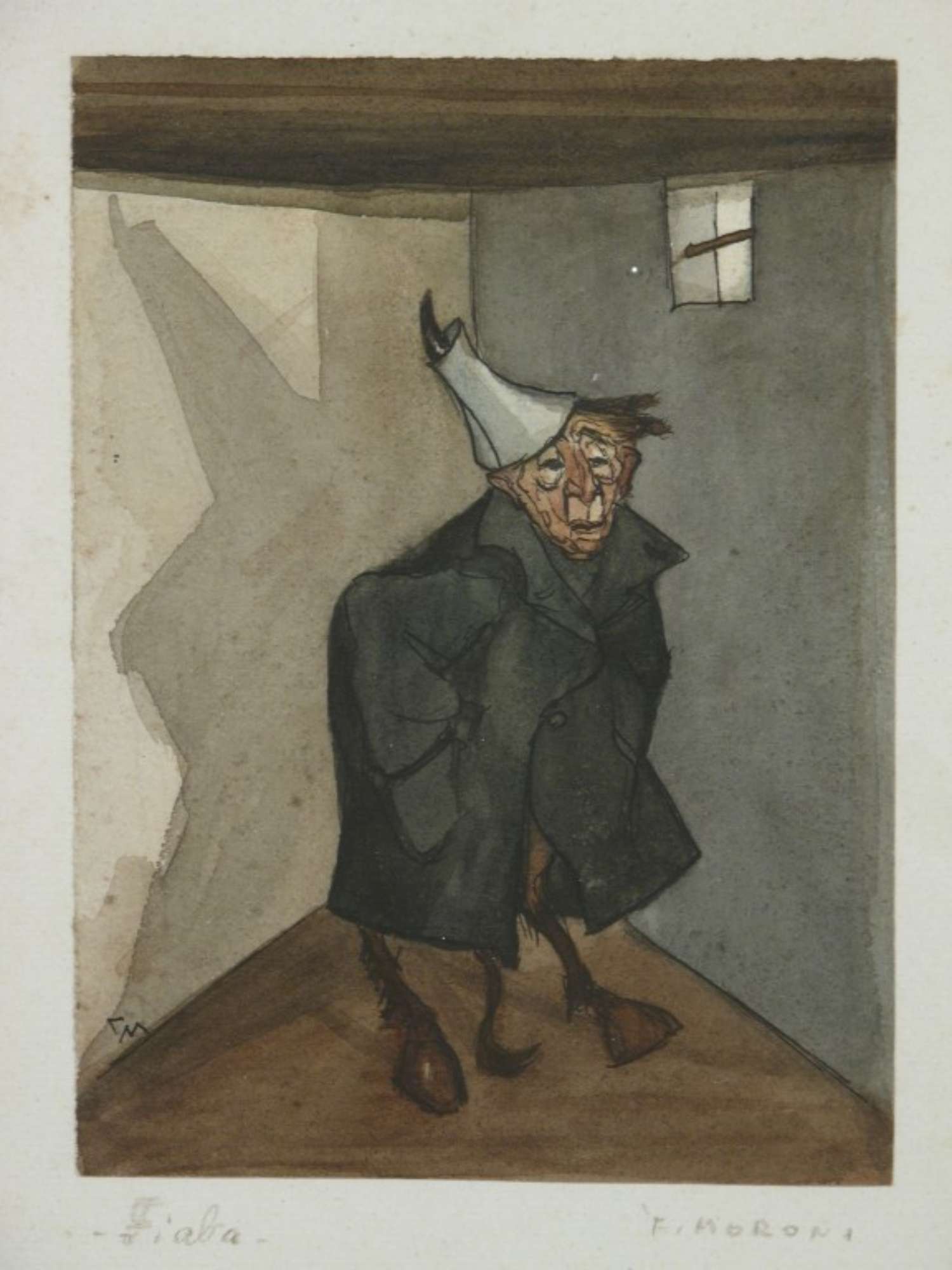 L'opera raffigura una figura con corpo snimale, coda e e zampe terminanti in zoccoli, testa umana con un corno coperto da una sorta di capello bianco. Indossa un'ampia giacca da frac.