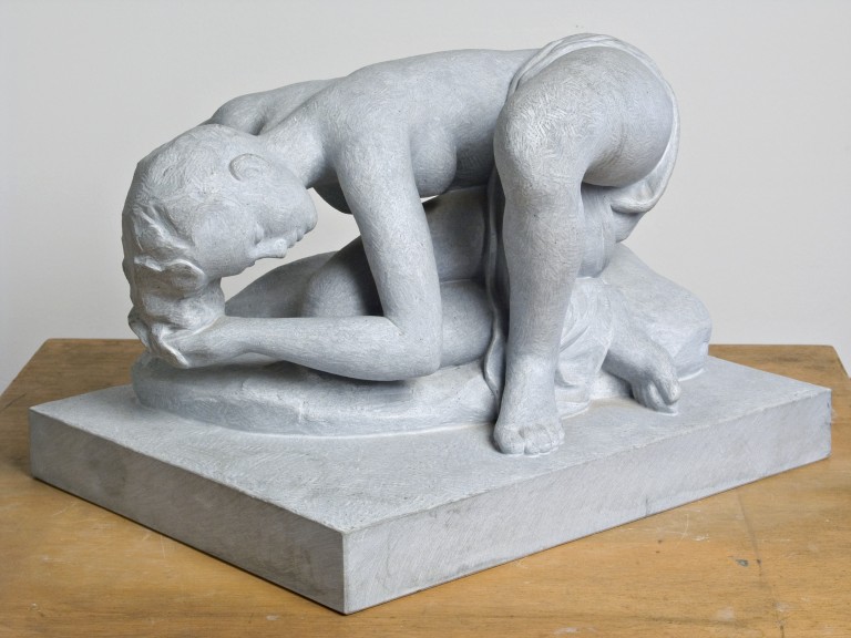L'opera ritrae una donna nuda raccolta e accovacciata, intenta a lavarsi i capelli.