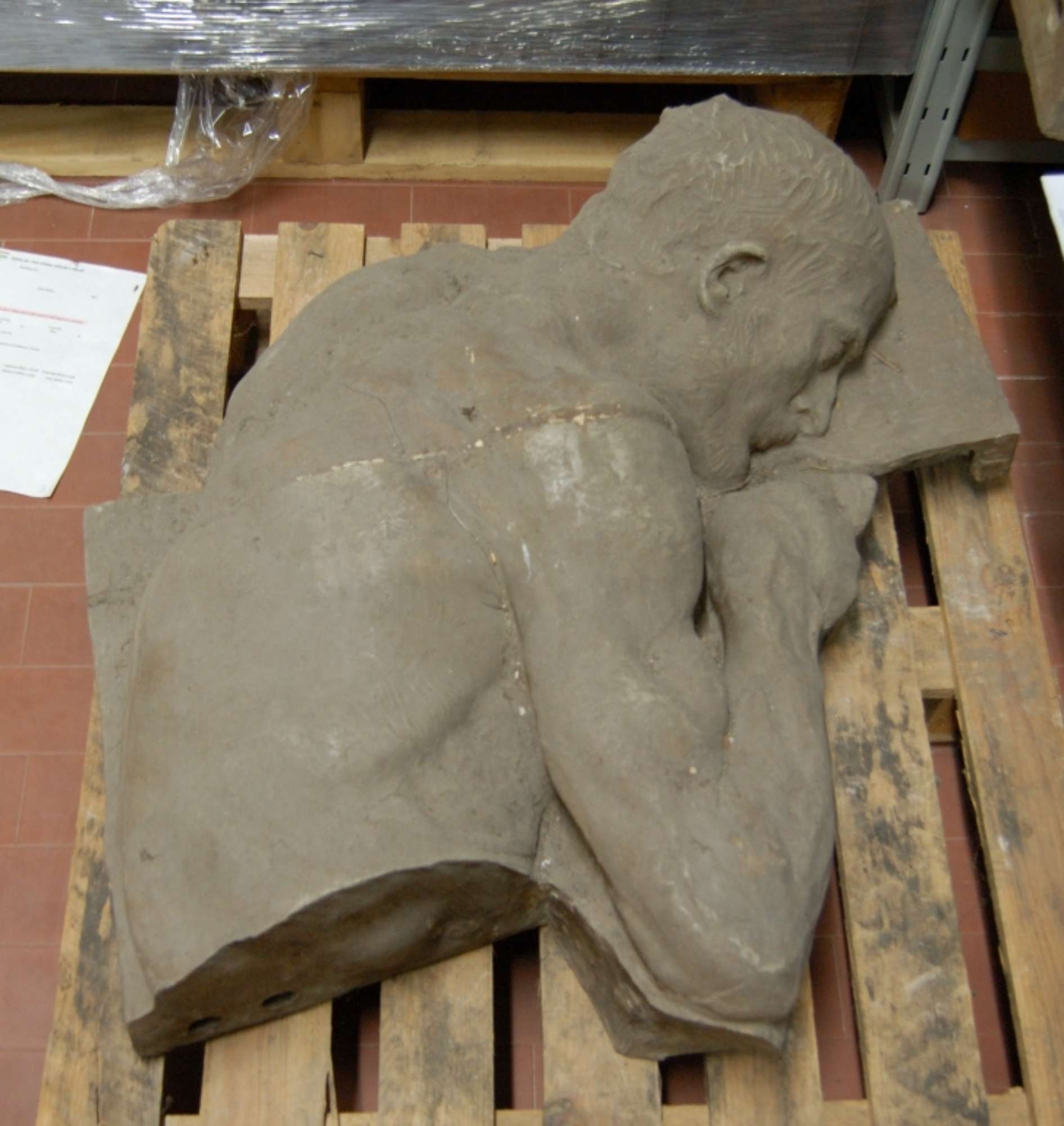 Particolare di bassorilievo che rappresenta la parte superiore della figura di un torniante.