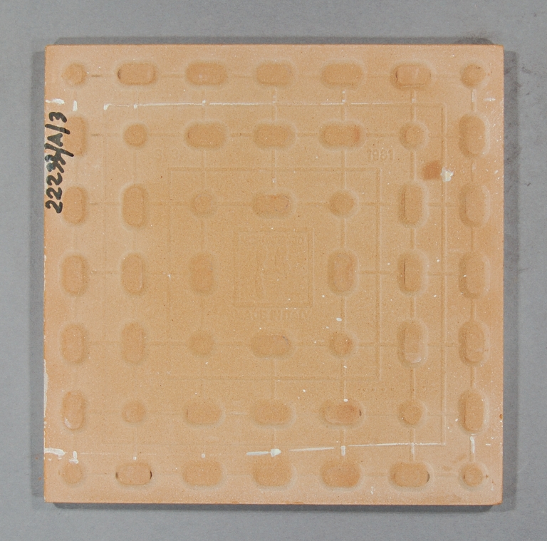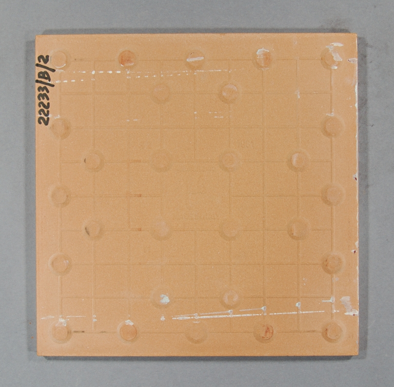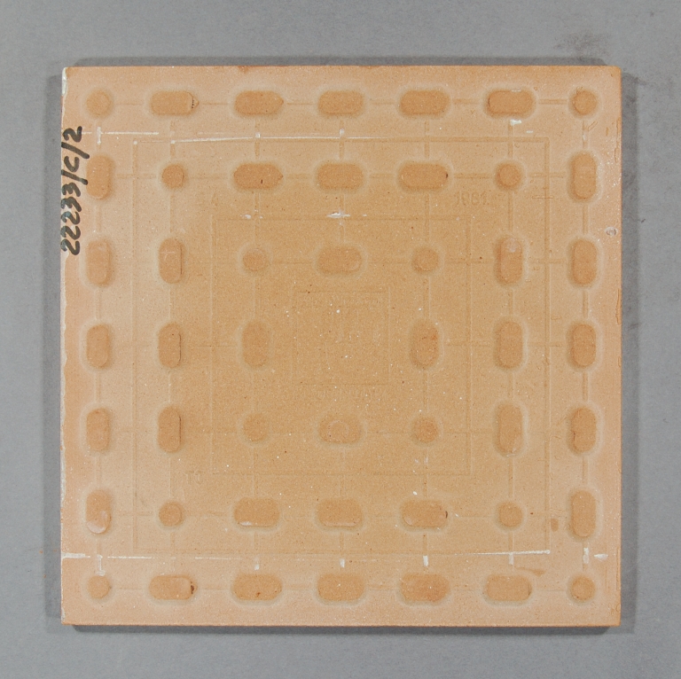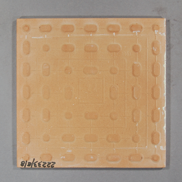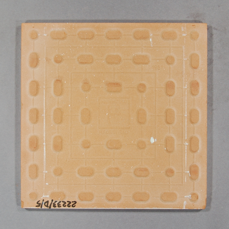Serie "La Natura – Spighe", 24 piastrelle smaltate a tinta unita di colore beige, 20 delle quali decorate a serigrafia con linee formate da punti di colore azzurro e verde: