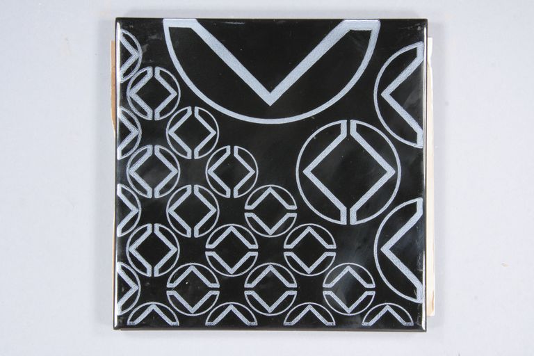 Due piastrelle decorate con motivi geometrici: