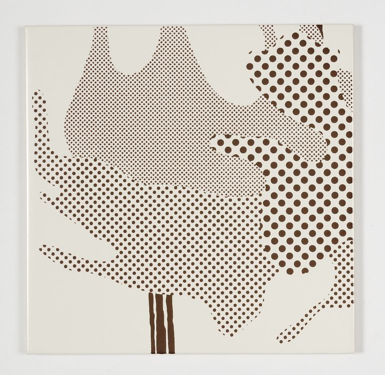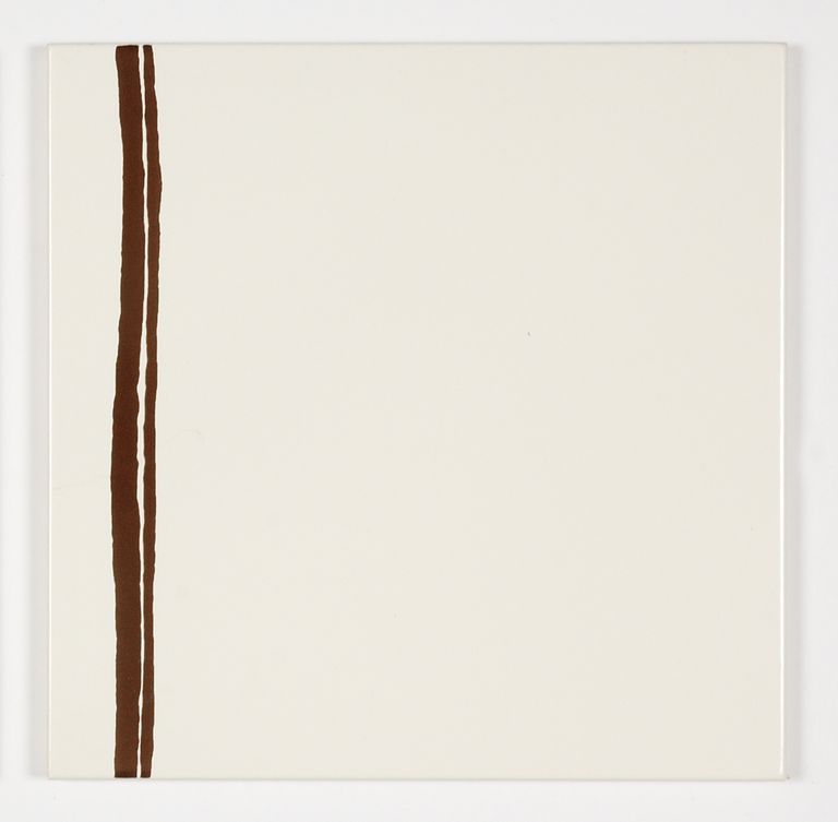Piastrelle della serie "Asti" composte da sei elementi e decorate a serigrafia marrone su smalto bianco matt.