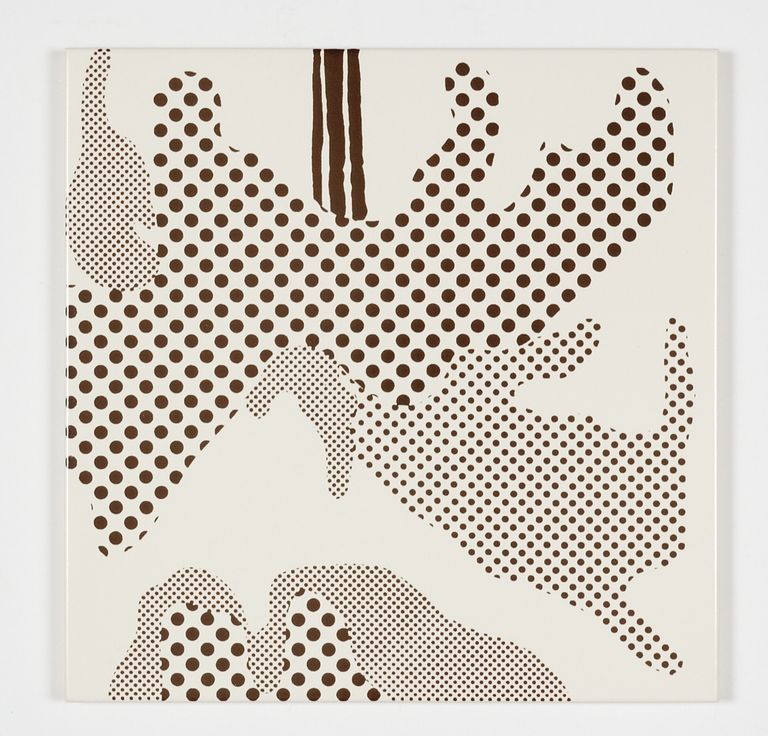 a – "Asti 37" 6 piastrelle decorate con forme irregolari unite tra loro e riempite da cerchi di diverse dimensioni;