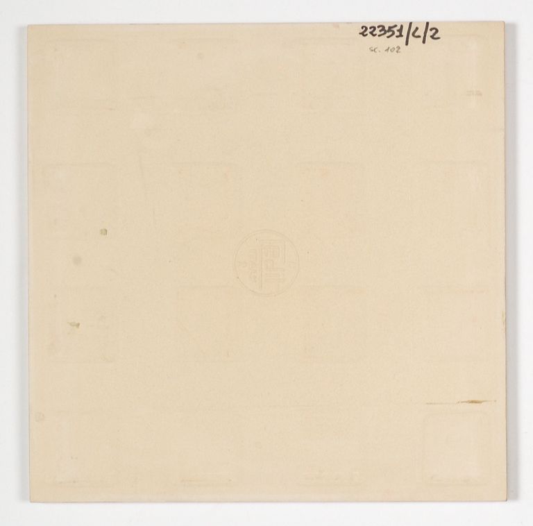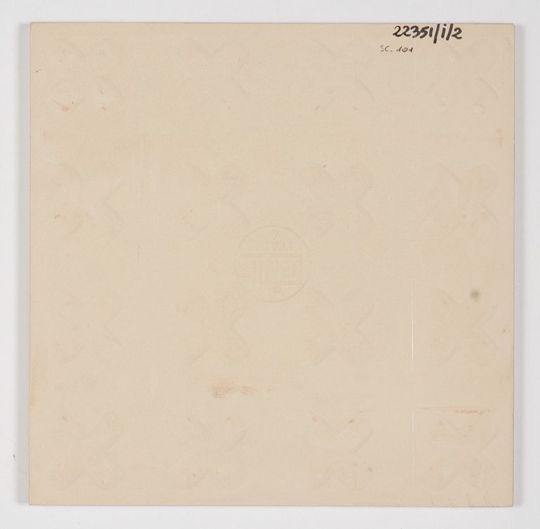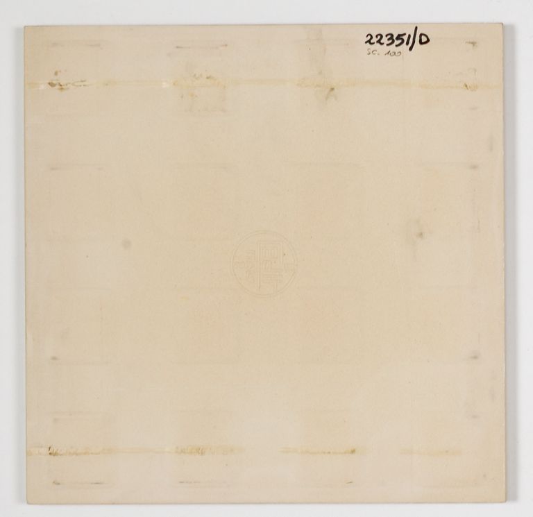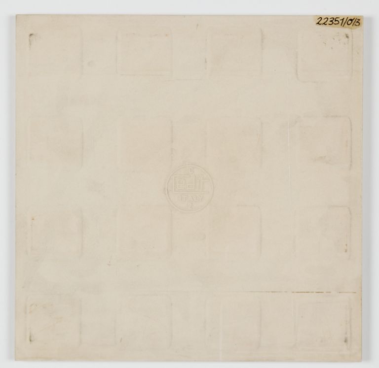 Serie "Chiaroscuro-Grigioverde". Le piastrelle sono caratterizzate da due sfumature di colore diverso ai due lati opposti e in alcuni casi riportano una decorazione serigrafica monocolore. Della serie sono presenti 13 elementi diversi.