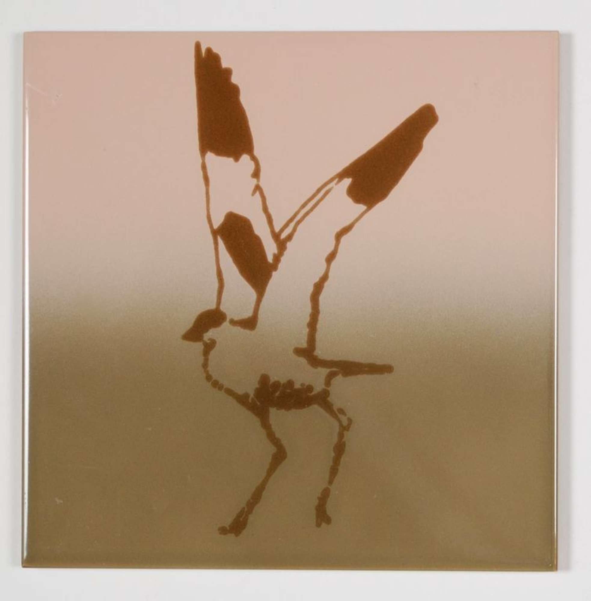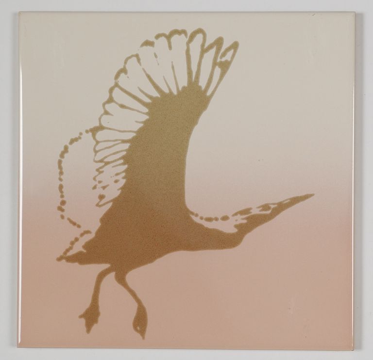 M: 3 piastrelle con disegno airone e sfumatura rosa/grigio;
