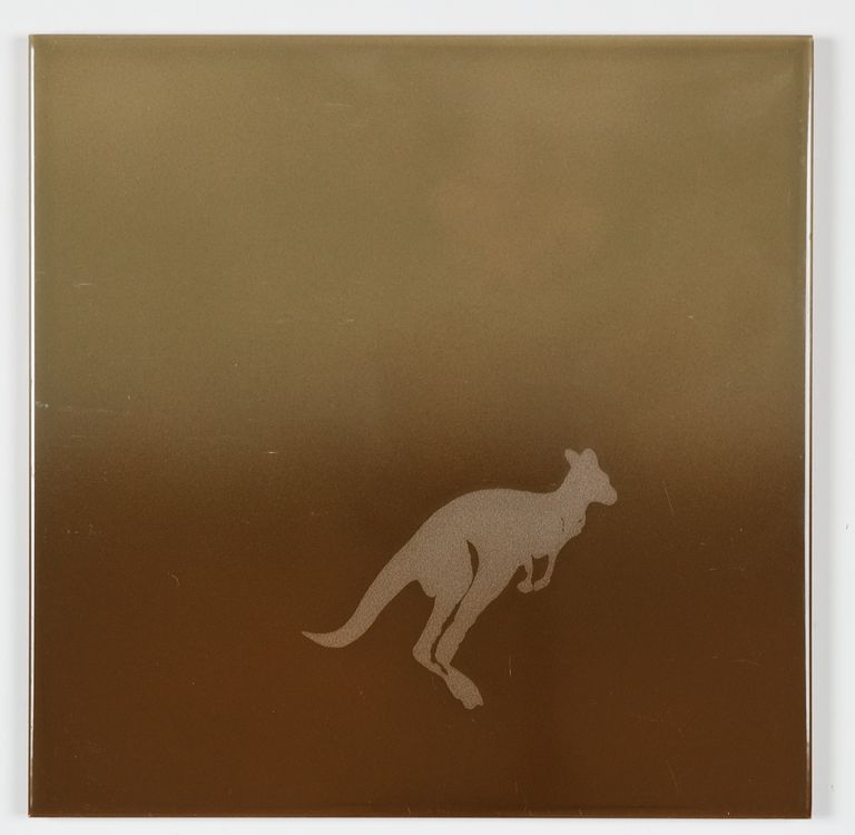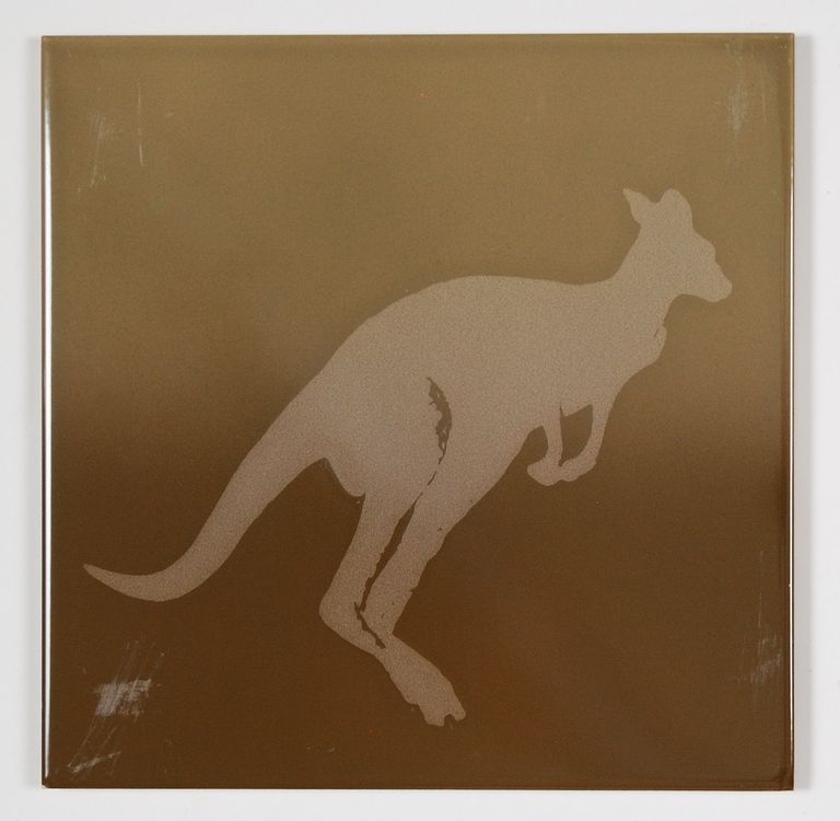 N: 2 piastrelle con disegno canguro e sfumatura grigio/ marrone;