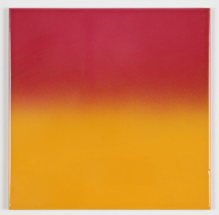 I: 2 piastrelle con sfumatura rosso/ arancio;