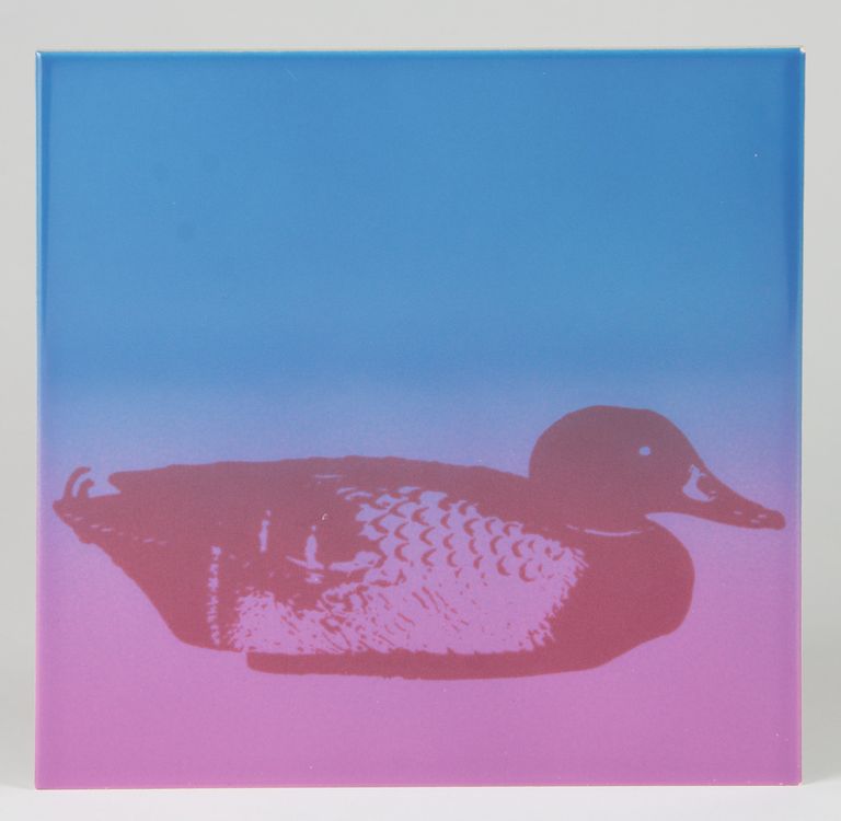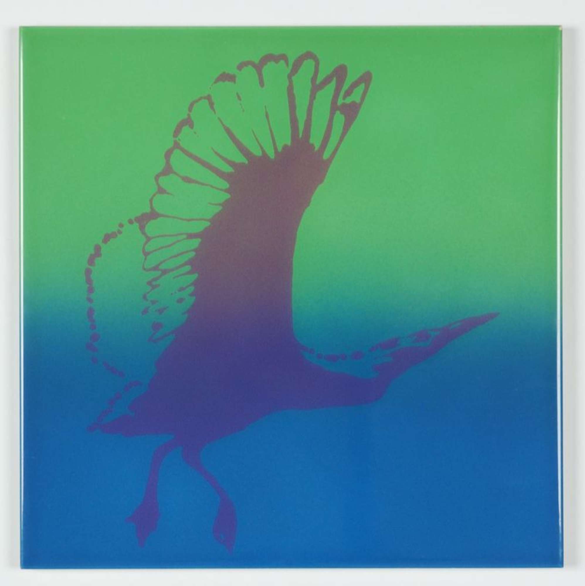 M: 1 piastrella con disegno airone e sfumatura verde/ blu;