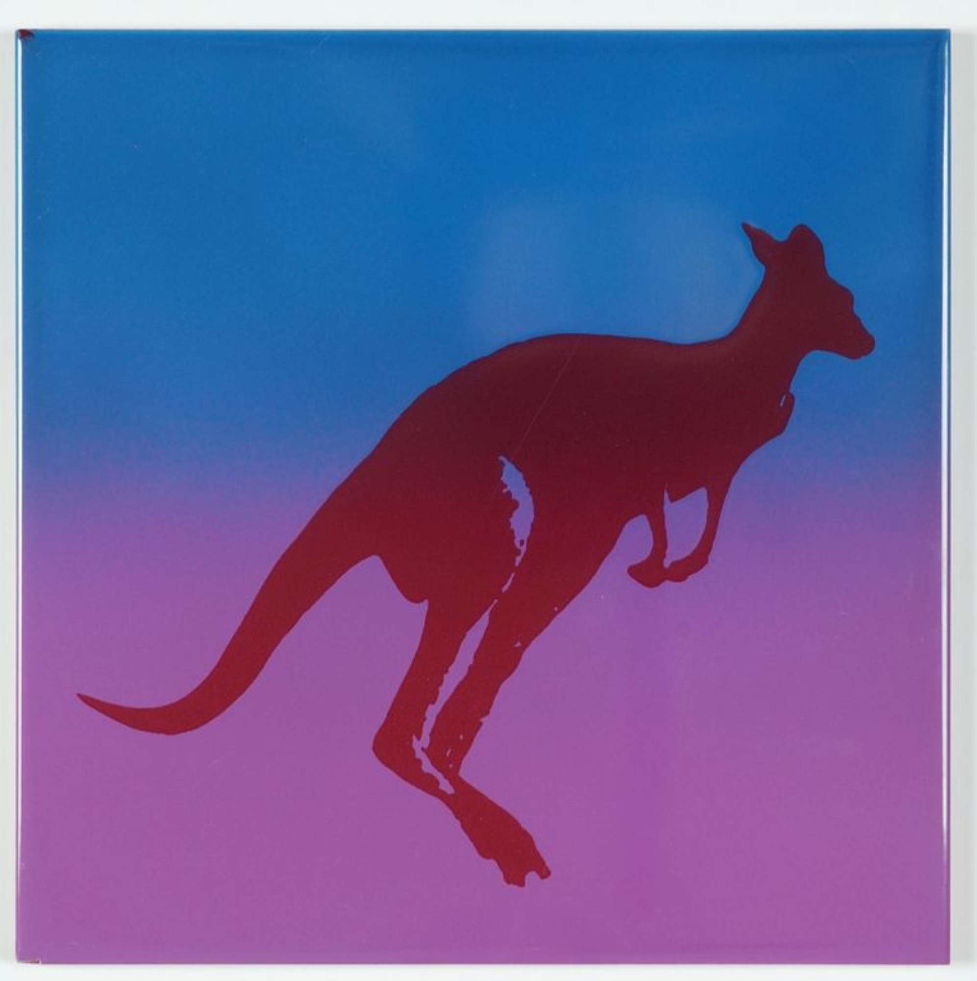 N: 1 piastrella con disegno canguro e sfumatura blu/viola.