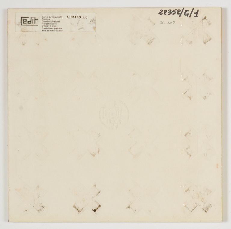 Serie "Arcoincielo". Le piastrelle sono caratterizzate da due sfumature di colore diverso ai due lati opposti, e in alcuni casi riportano una decorazione serigrafica monocolore. Della serie sono presenti 12 elementi diversi.
