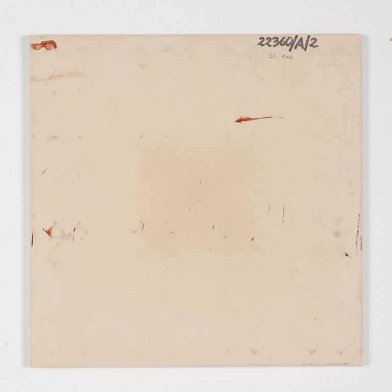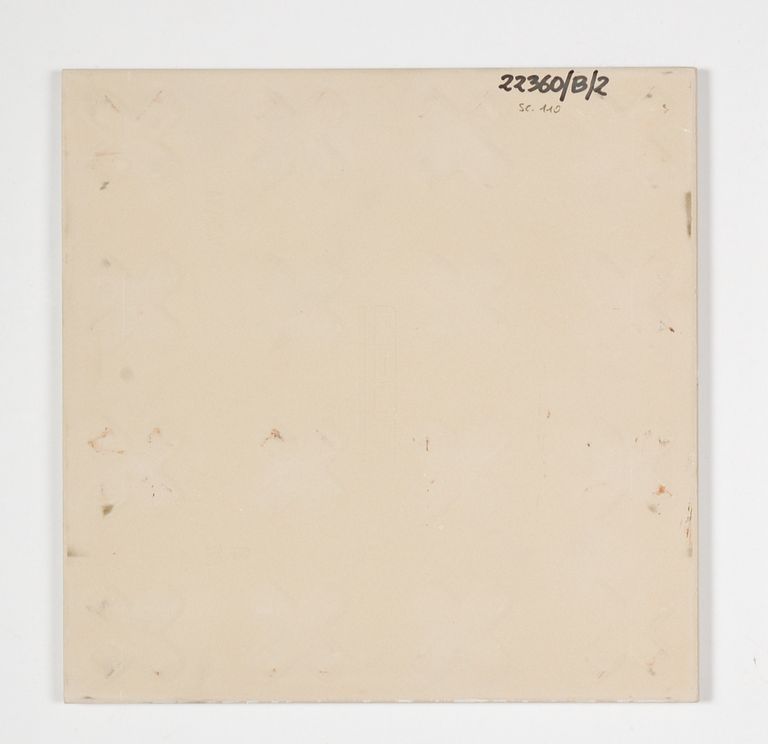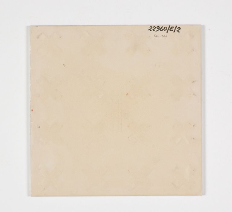 Piastrelle della linea "Nilo azzurro", composte da quattro elementi realizzati a serigrafia in tre colori sopra smalto bianco matt.