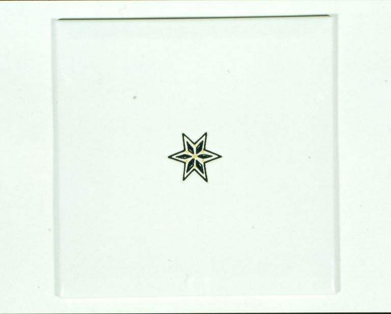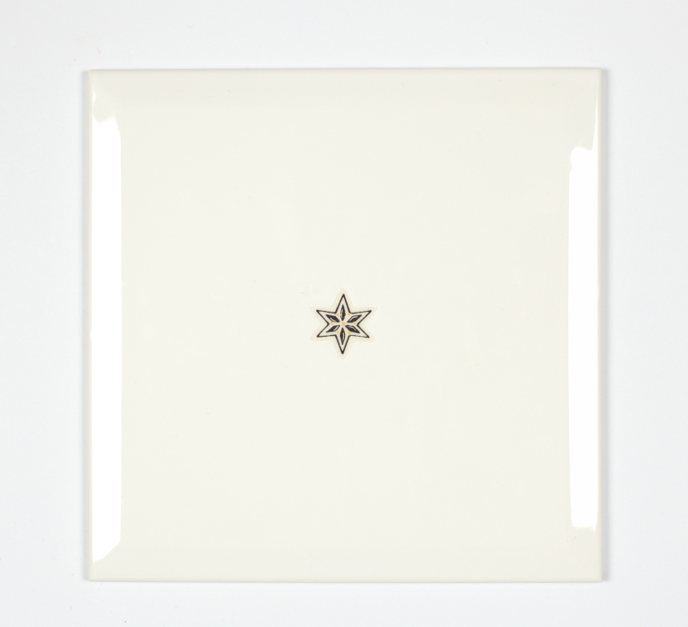 a: "Medea 1" 3 piastrelle con decorazione centrale di una stella a 6 punte nei colori giallo e nero;