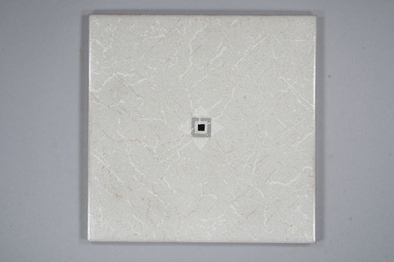 c: "Milo Grigio" decorata con 2 quadrati posti al centro della superficie;