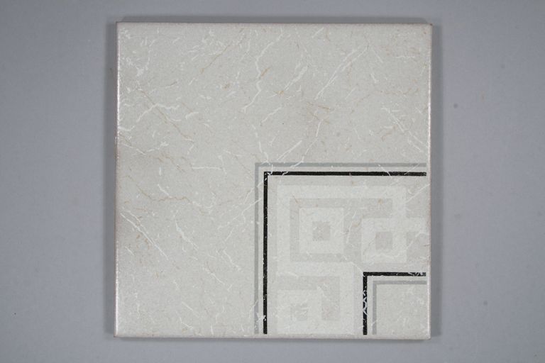 d: "Paros Grigio 1" decorata con una fascia dai motivi greci posta a "L" e si sviluppa da un angolo fino al centro;
